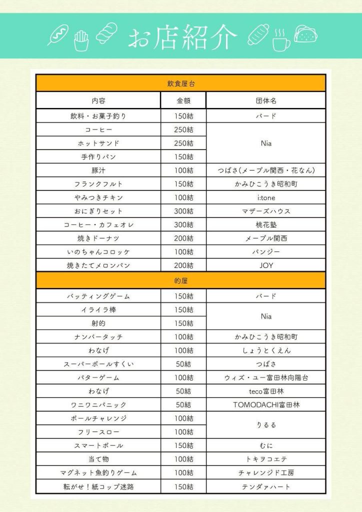 【イベント情報】🎆結祭~ゆいフェス~🎆【2026/1/24(土)】2026.01.19イベント🎆 結祭(ゆいフェス)開催 🎆〜人と地域を結ぶ〜📅 2026.1.24(土)🕚 11:00〜15:00📍 富田林小学校 体育館縁日ゲームや屋台、体験ブース、和太鼓や合気道演舞などのステージイベントまで✨メープル関西からは焼きドーナツの出店を予定しております。子どもも大人も楽しめる、地域のあたたかさがつまったお祭りです。ぜひご家族やお友だちと遊びに来てください🌱メープル関西では、見学・体験・新規利用を随時受け入れています。利用者さん一人ひとりが安心して相談でき、無理なく作業に取り組めるよう、関わり方や作業環境づくりを大切にしています。ぜひ一度、お気軽にお問い合わせください。